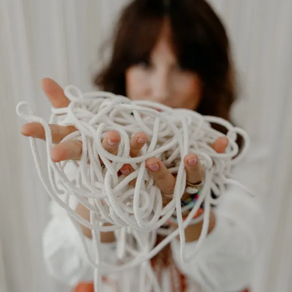 Con materiales nobles, hilos orgánicos y técnicas ancestrales, damos vida a tu diseño, llevándolo al arte. Cada nudo es una decisión consciente, cada textura una declaración de tu consciente.
