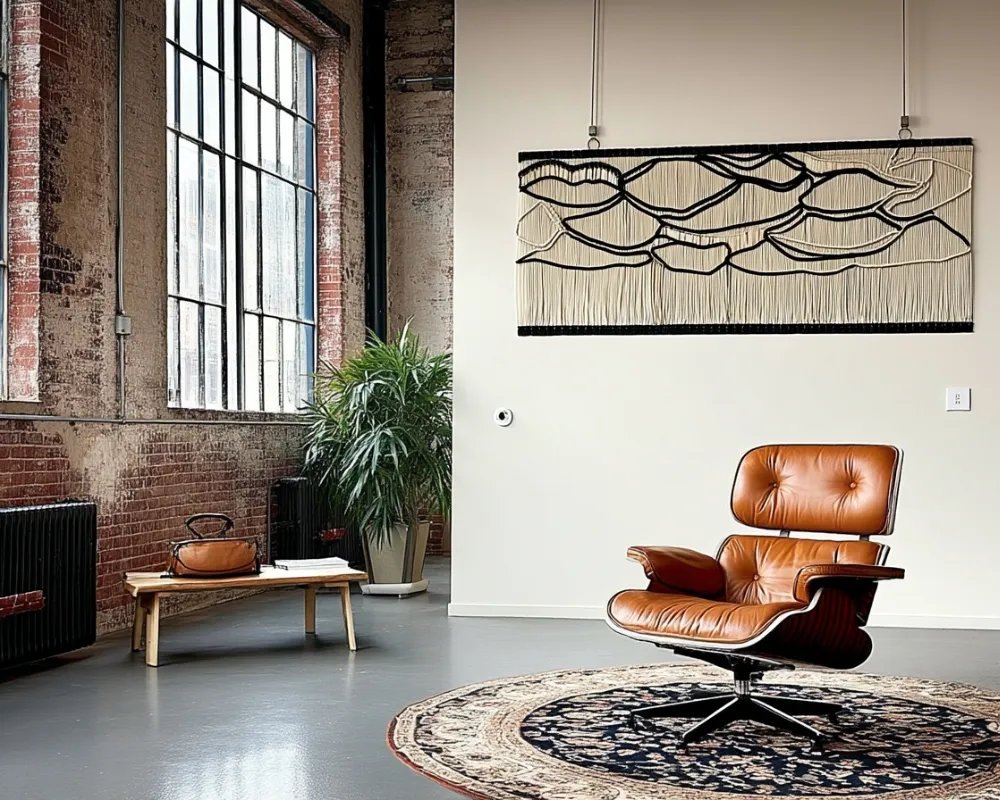 Tapiz artesanal en comedor de diseño elegante y minimalista