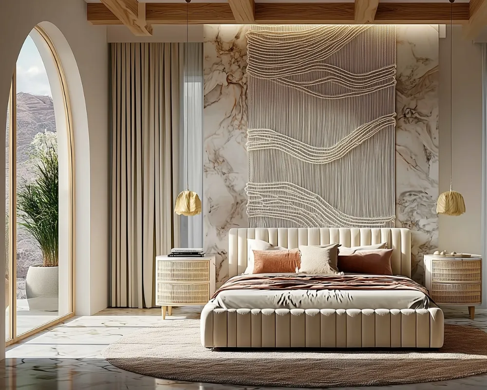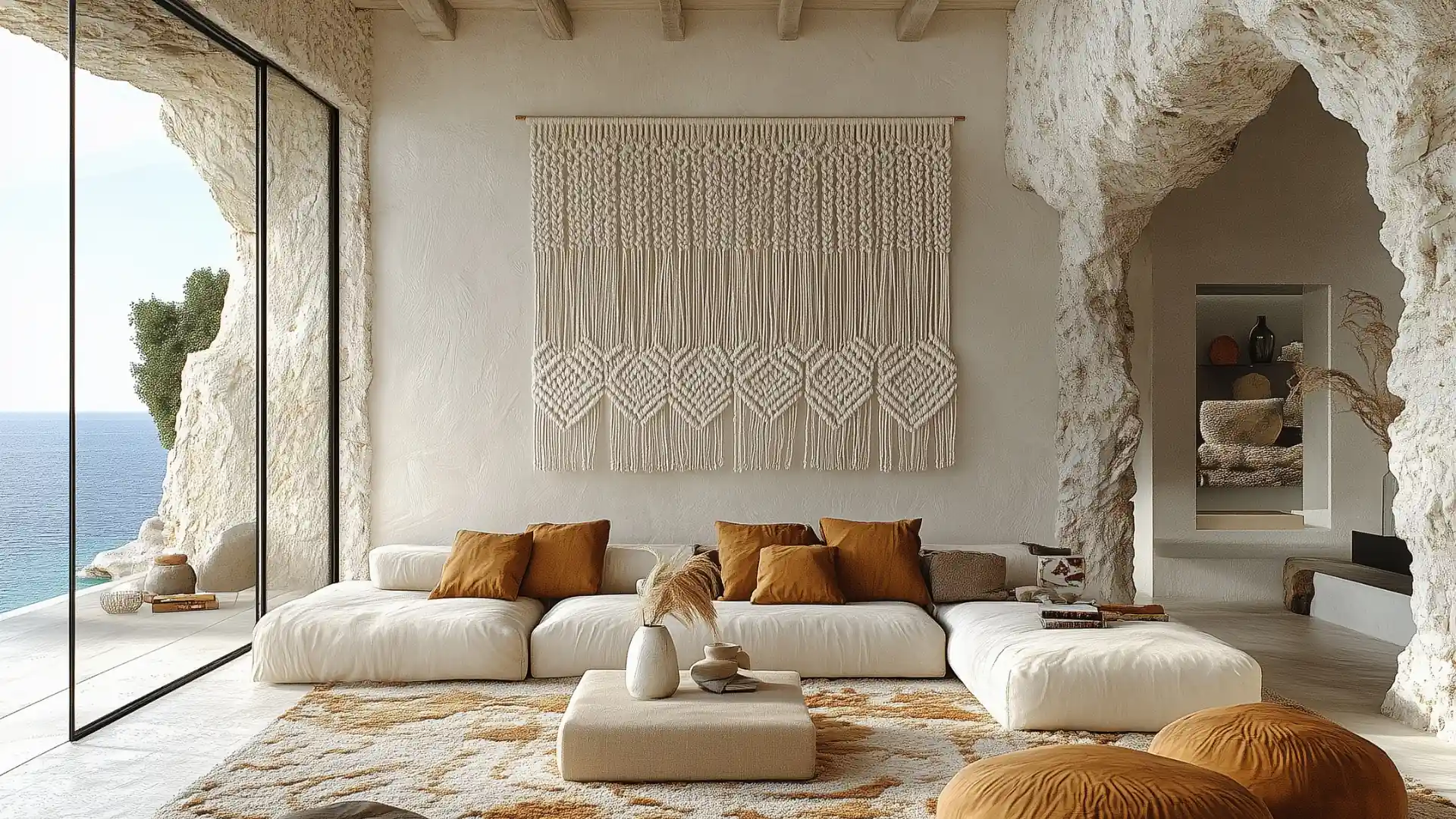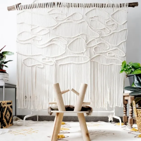 Un tapiz mural de macramé moderno puede ser ese detalle que transforma un buen espacio en uno inolvidable.