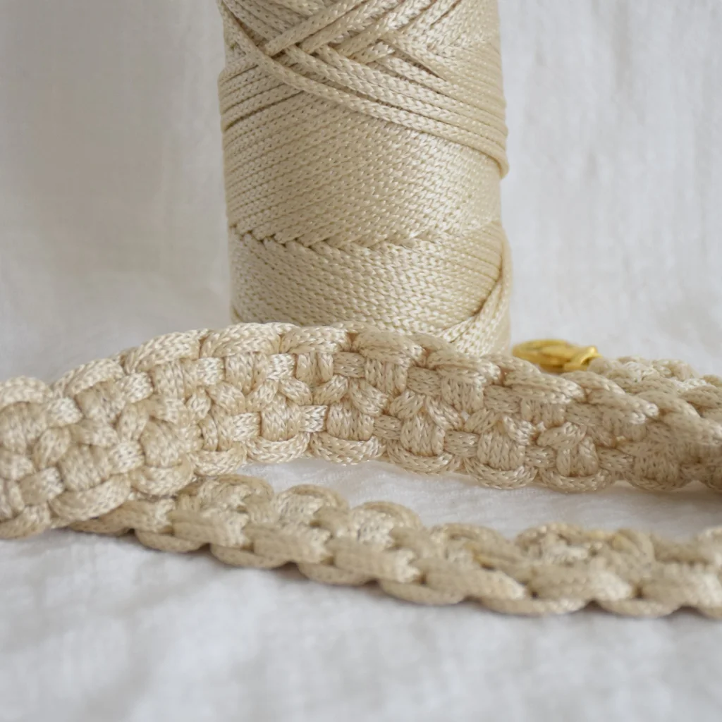 💫 Añade el Hilo Macrame Glam 3mm de Fruto Samore a tu mesa de trabajo y descubre cómo una simple cadeneta de nudos puede convertirse en tu pieza favorita.