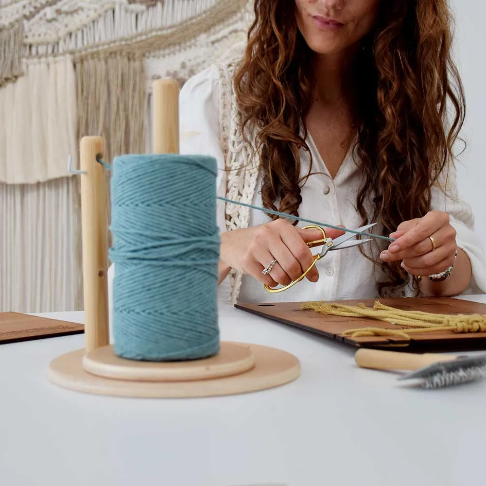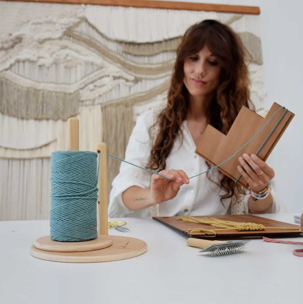 Es un sistema modular, diseñado por y para amantes del macramé moderno, que cuida tus materiales, protege tu hilo y te permite trabajar con fluidez.