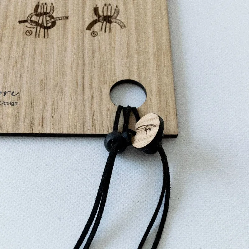 En la propia tabla encontrarás los tres nudos básicos grabados. Un recordatorio sencillo que te acompaña cuando empiezas o cuando quieres repasar lo esencial sin tener que mirar pantallas. Como tener a tu lado a alguien que te dice: “tranquila, empieza por aquí”.
