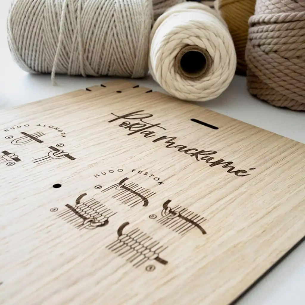 Incluye además los 3 nudos básicos grabados en la tabla, para que siempre los tengas a mano, ideal si estás empezando en el macramé.