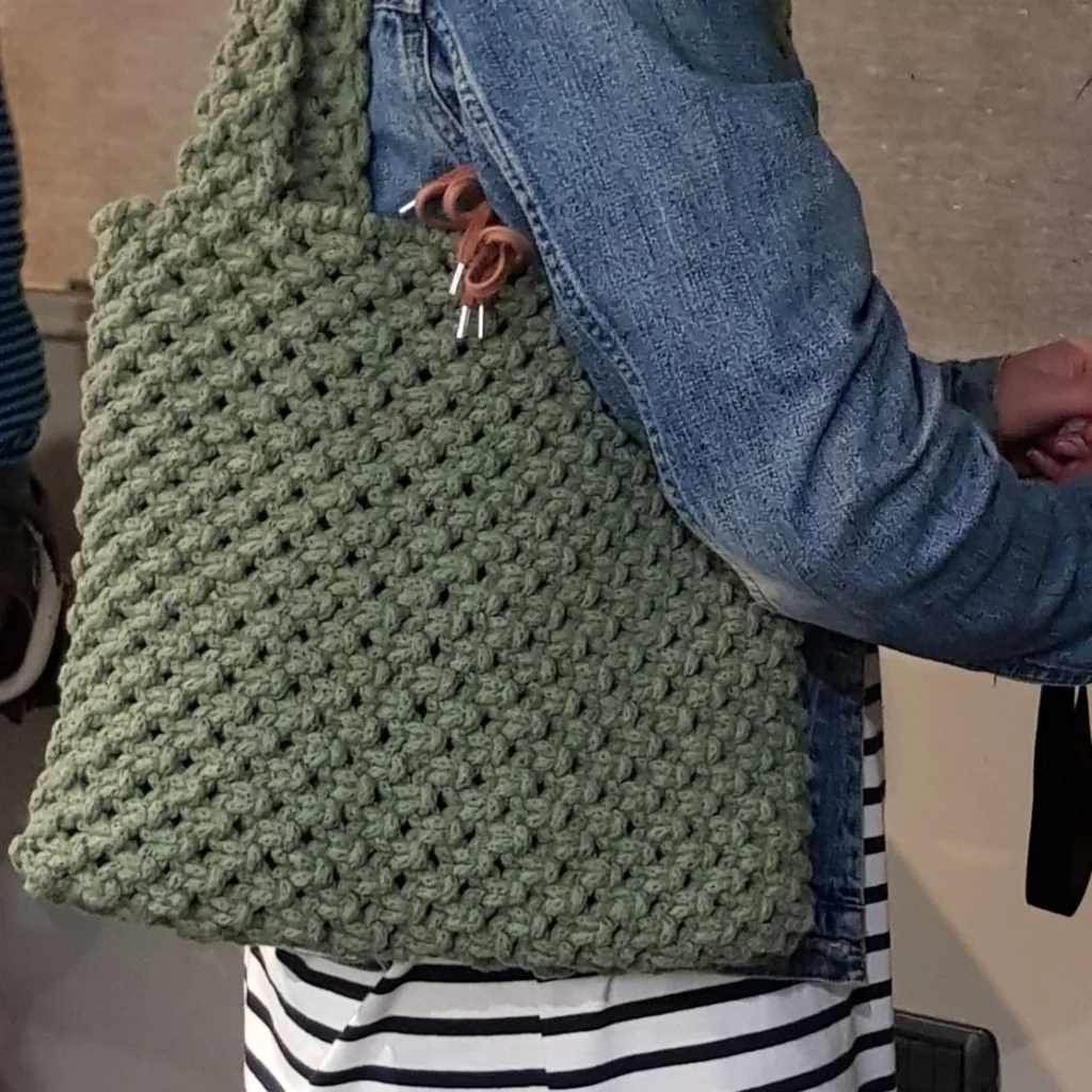Un proyecto pensado para que disfrutes anudando, avances sin miedo y termines tu bolso en menos tiempo del que imaginas.