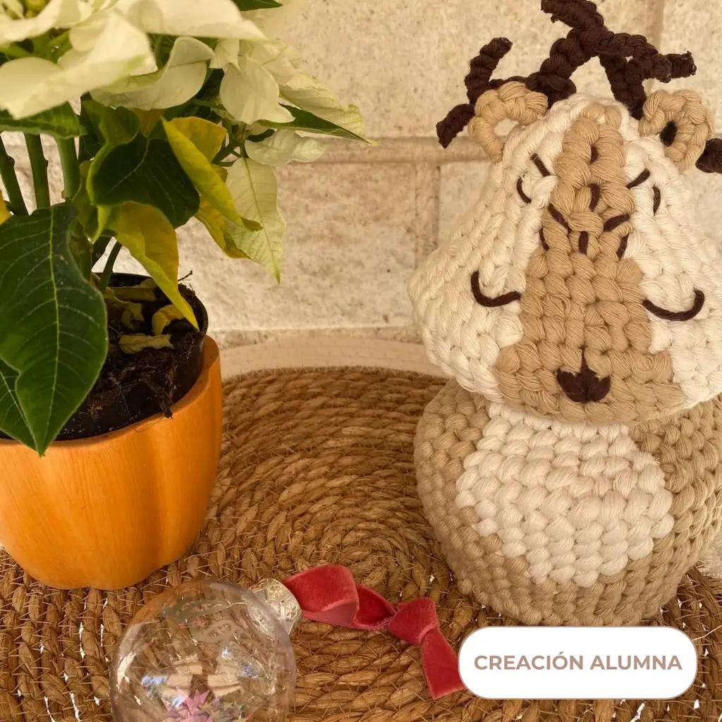 Aprenderás a construir una figura tridimensional en macramé con volumen, estabilidad y forma definida.