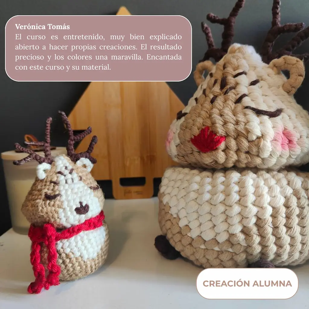 Además, descubrirás cómo adaptar el patrón para crear mini renos o personalizar los colores según tu estilo.