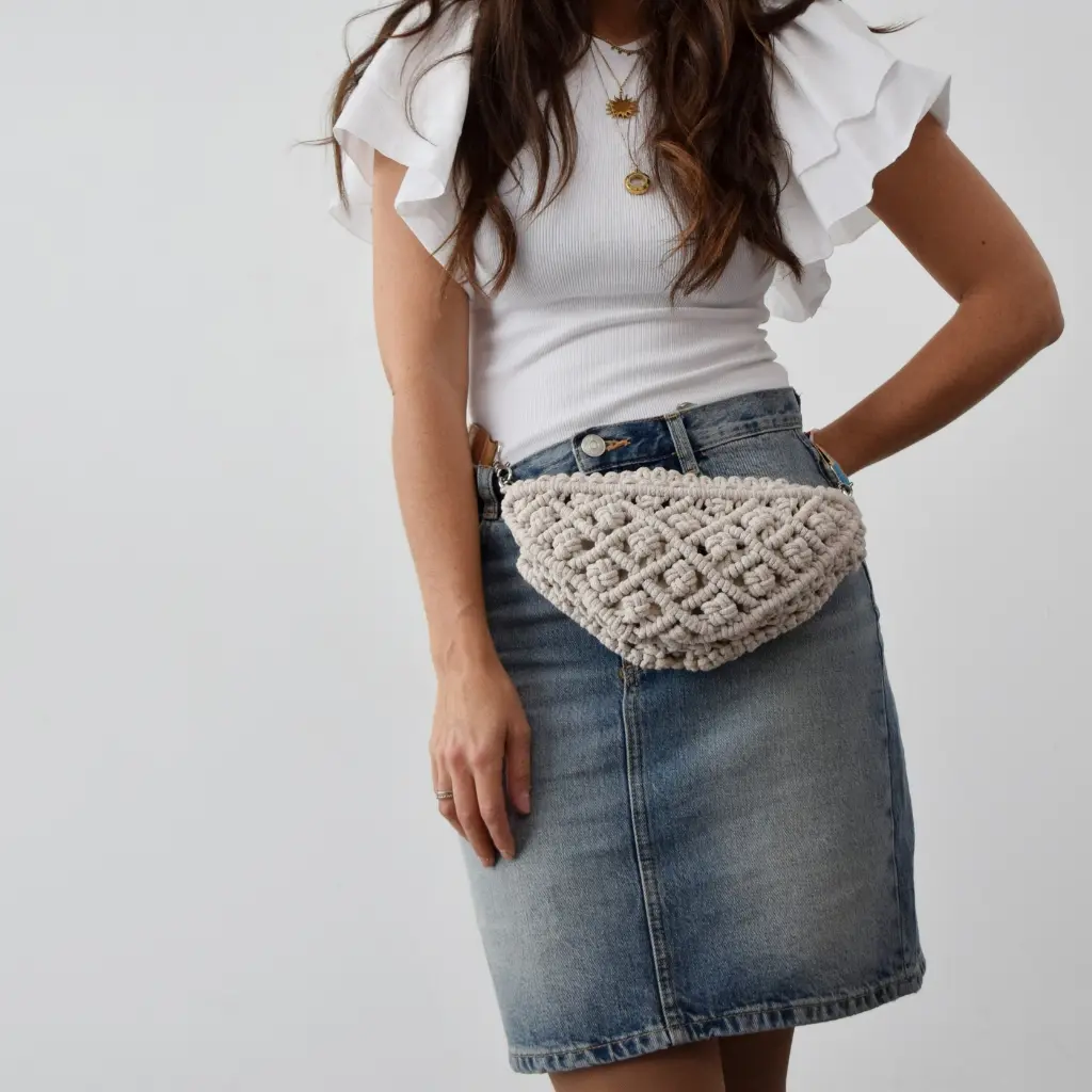 Crea tu propia Riñonera Olivia con este kit de macramé y añade un toque único a tu estilo.