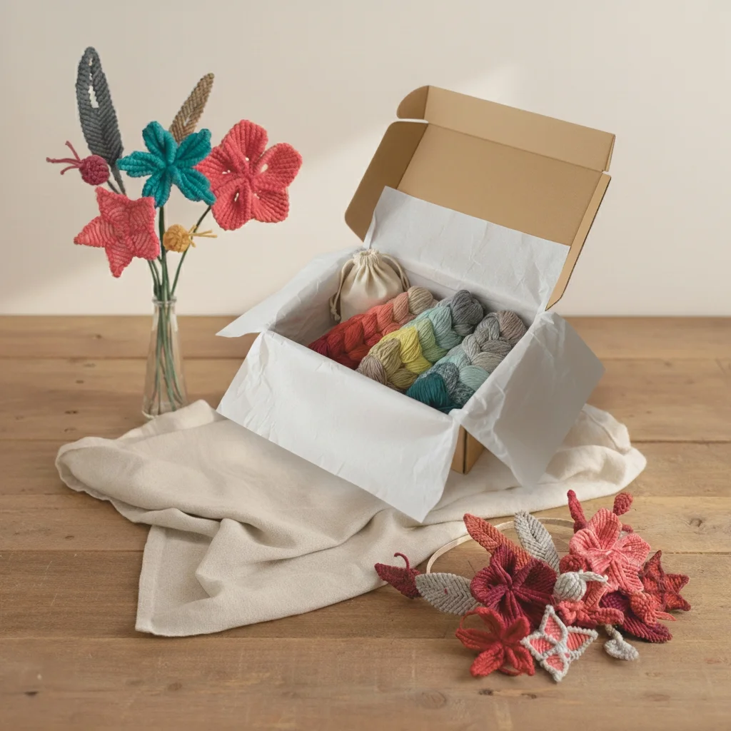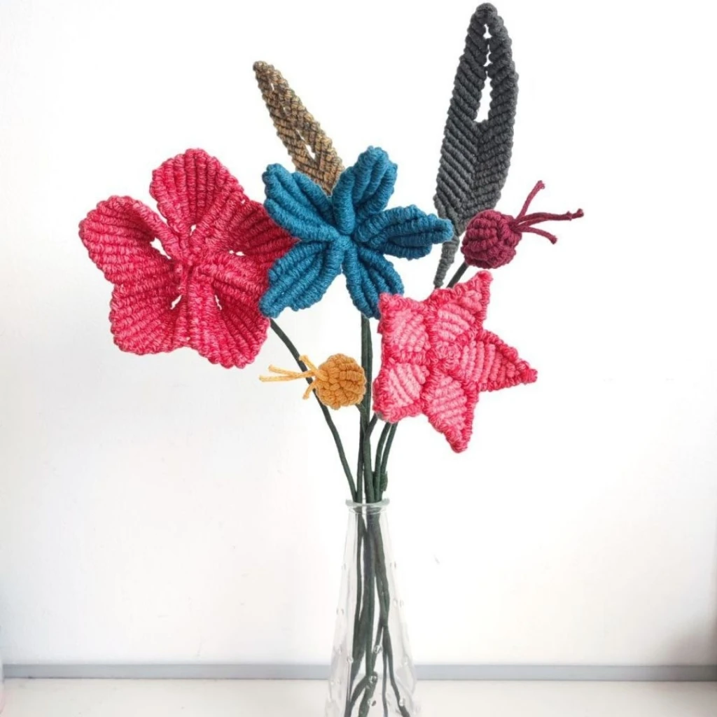 Con este kit no solo aprendes una técnica nueva, te adentras en el micromacramé… un lenguaje minucioso que convierte lo pequeño en extraordinario. Cada flor, cada hoja y cada elemento que anudas es una llave a infinitas posibilidades.